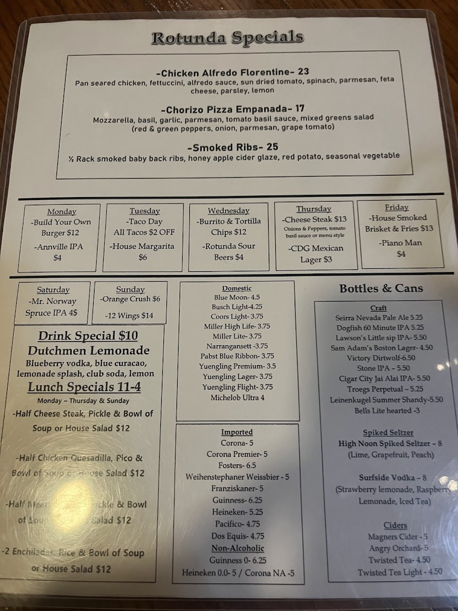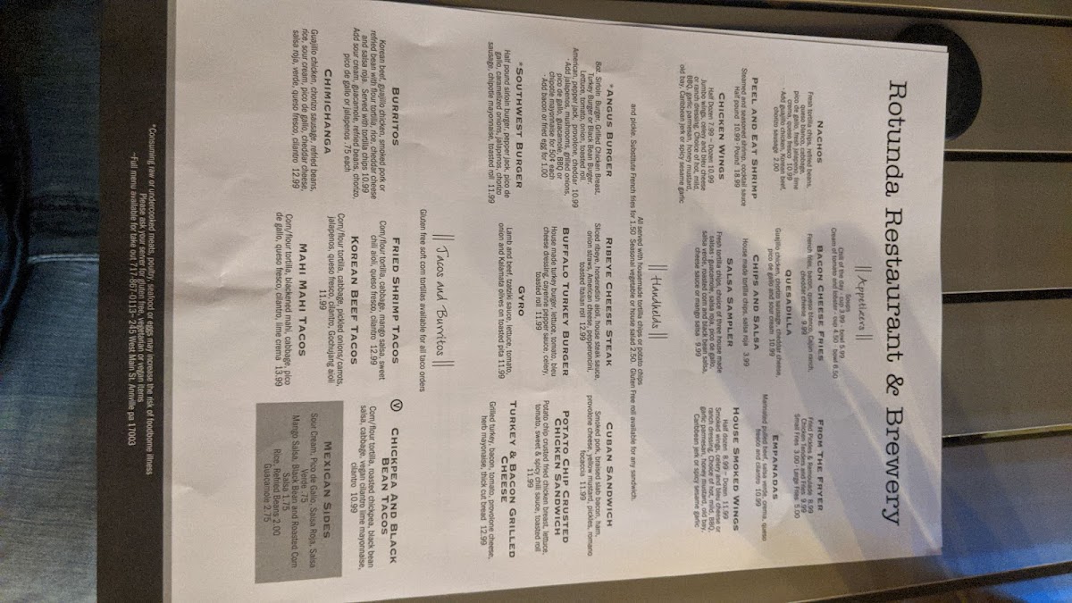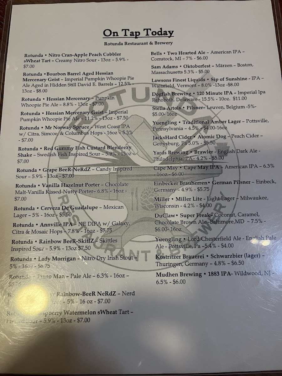 If you're looking for a relaxed spot with great food and craft beer, the Rotunda Restaurant & Brewery Menu has something for everyone. Located in the heart of Annville, this place offers a cozy, inviting atmosphere where you can enjoy hearty meals alongside expertly brewed beers. The menu features a variety of dishes, from savory comfort foods to lighter fare, all made with fresh, locally-sourced ingredients. Whether you're in the mood for a classic pub burger, a refreshing salad, or a satisfying entrée, there's a little something for every taste. Paired with a selection of their own craft brews, each meal becomes an experience. Whether you're coming in for a casual dinner or celebrating with friends, the Rotunda has all the ingredients for a great time.